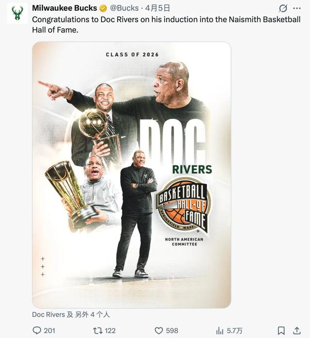 前几天雄鹿还发推文祝贺他们的主帅入选名人堂呢,结果……